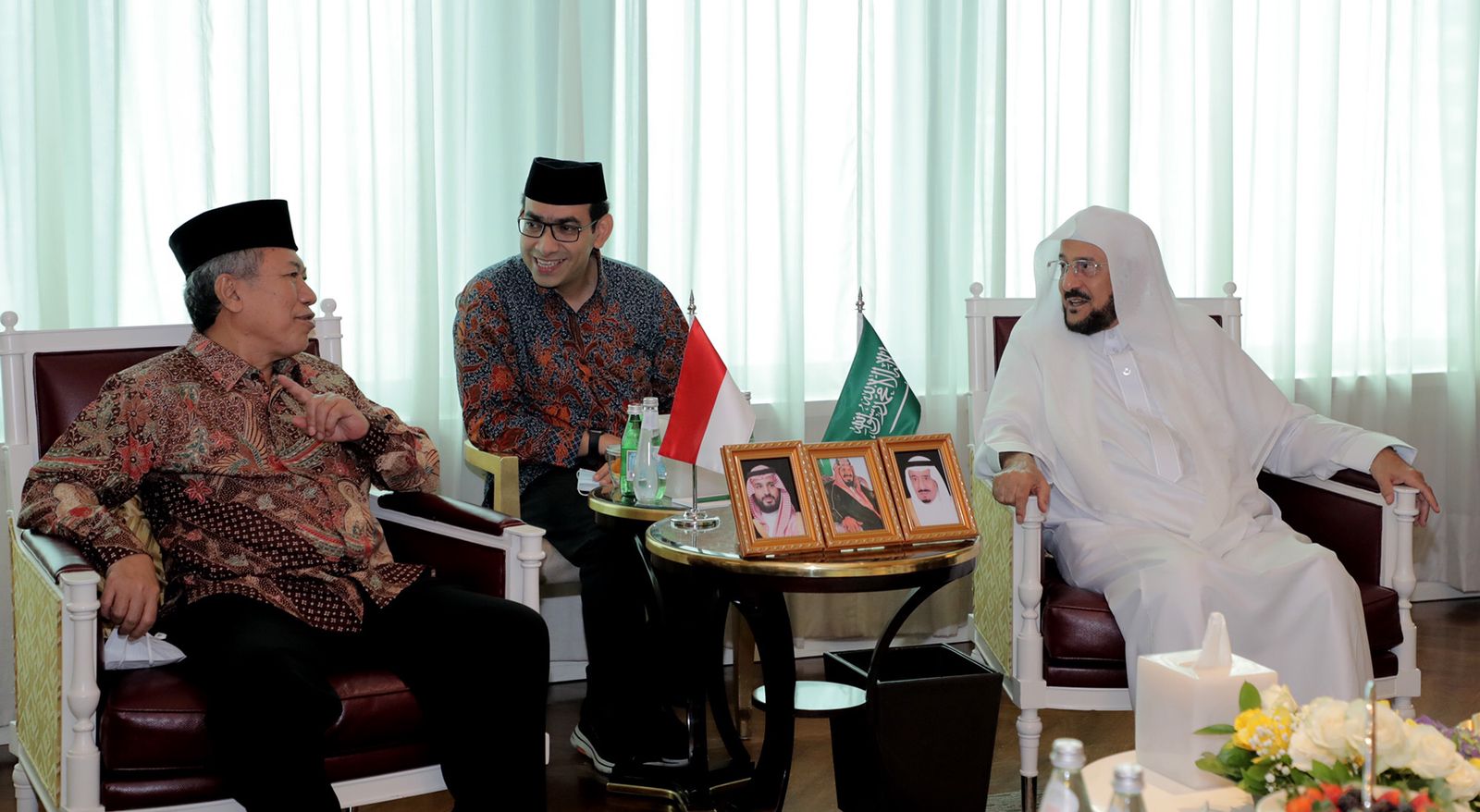 وفي ختام اللقاء قدّم معالي وزير الشؤون الإسلامية، لرئيس الجمعية المحمدية بإندونيسيا، مصحفًا فاخرًا من إصدارات مجمع الملك فهد لطباعة المصحف الشريف بالمدينة المنورة، والتُقطت الصور التذكارية بهذه المناسبة.. كما حضر اللقاء من الجانب الإندونيسي الأمين العام للجمعية الدكتور عبدالمعطي، ورئيس العلاقات العامة والتعاون الدولي بالجمعية الدكتور محيي الدين جنيدي، ورئيس الجامعة المحمدية بجاكرتا الدكتور مأمون مراد، ورئيسة المنظمة النسائية بالجمعية الدكتورة أنيسيا كومالا، ووكيلة عميد كلية العلوم الإسلامية التابعة للجمعية الدكتورة فاطمة نور فؤاد، ومن الجانب السعودي حضر وكيل الوزارة للشؤون الإسلامية الشيخ عواد بن سبتي العنزي، ووكيل الوزارة لشؤون المطبوعات والبحث العلمي الشيخ عبدالعزيز بن محمد الحمدان، والمستشار بوكالة الشؤون الإسلامية الشيخ محمد بن عبدالواحد العريفي.