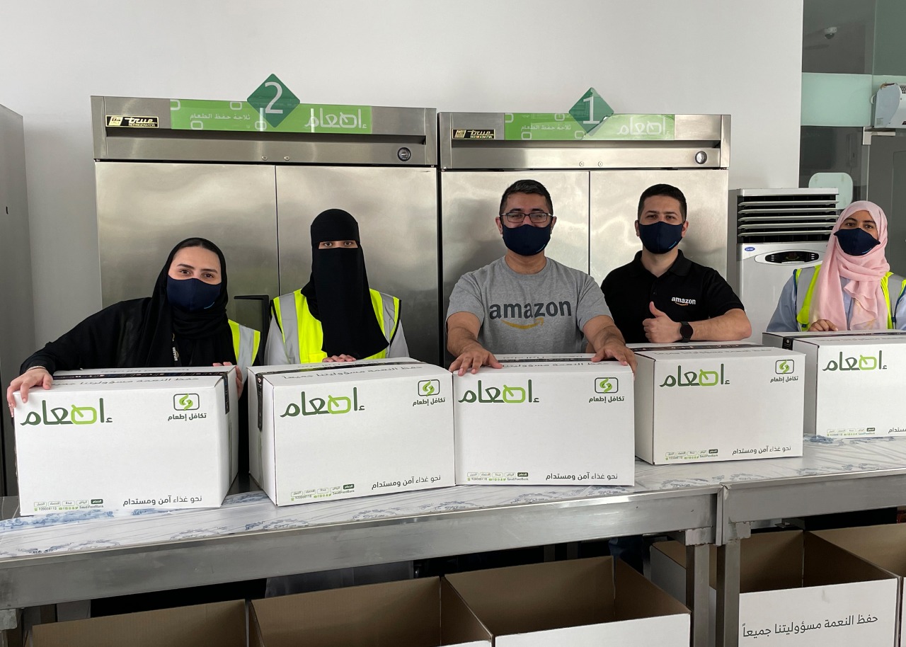 وتوفر أمازون، بالتعاون مع بنك الطعام السعودي “إطعام”، آلاف الوجبات الغذائية، وذلك عبر استخدام مستودعاتها لتجهيز وتعبئة الصناديق بمستلزمات البقالة والأطعمة الأساسية، في حين تعمل شبكة أمازون للخدمات اللوجستية والتوصيل على توزيع هذه الصناديق، وبالتالي توفير ما يزيد عن مليون وجبة طعام للأسر المتعففة.