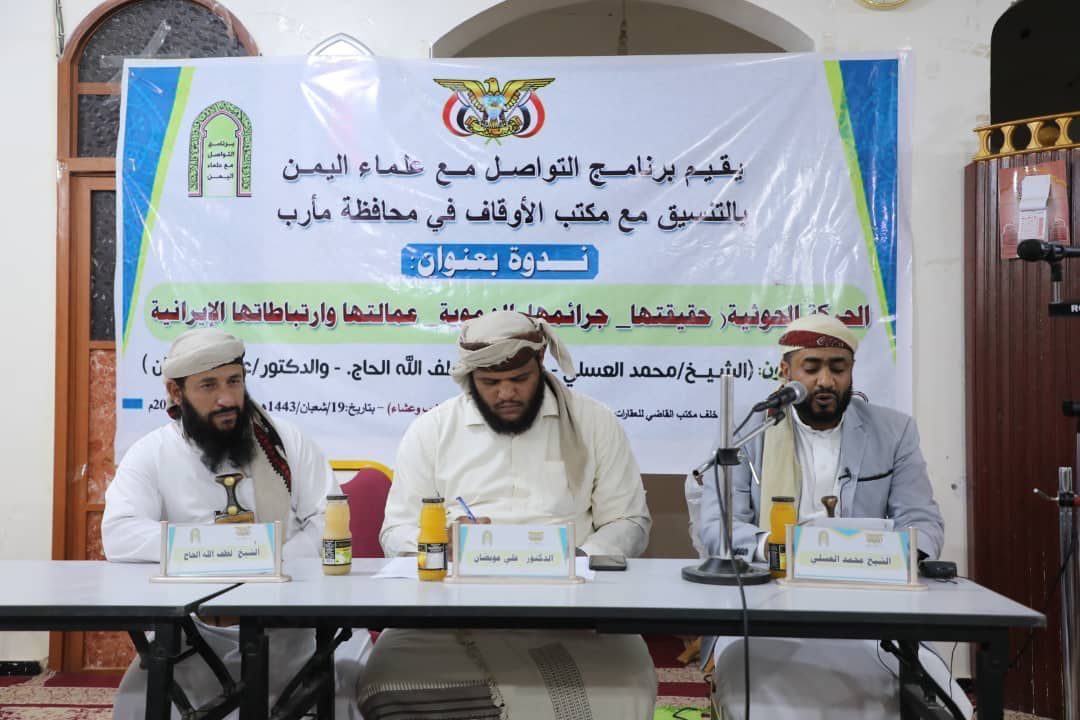 ويهدف برنامج “القوافل الدعوية” الذي ينفذه برنامج التواصل مع علماء اليمن في المحافظات المحررة، إلى تحصين المجتمع من شبهات ميليشيا الحوثي، والتوعية بخطر الأفكار الباطلة والدخيلة التي يحاولون غرسها في المجتمع اليمني، إضافة إلى توحيد الجهود الدعوية بين كافة المكونات الدعوية اليمنية بما يحقق الاصطفاف الوطني في مواجهة كل الأفكار المتطرفة.