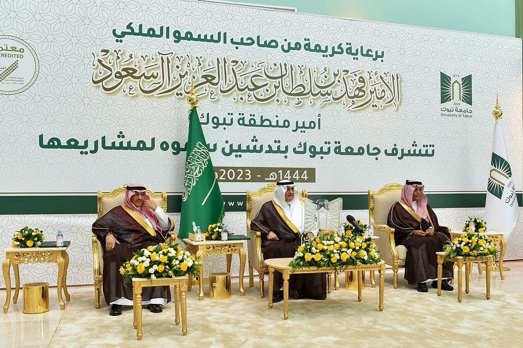 وكان أمير تبوك قد دشّن عددًا من مشاريع جامعة تبوك، التي تجاوز إجمالي تكلفتها 232 مليون ريال، حيث كان في استقباله لدى وصوله مبنى كلية الصيدلة الجديد بالجامعة، وزير التعليم يوسف بن عبدالله البنيان .