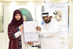 في نهاية الأمسية كرم الأستاذ/ دخيل الشمراني رئيس نادي وسم الثقافي الأستاذ على الماجد والأستاذة زهراء الجييلي، وصرح بأن نادي وسم يحرص دائماً على إثراء الحركة الثقافية وما ساعده في ذلك تعاون جمعية الثقافة والفنون التي لا تخفى جهودها على الجميع .