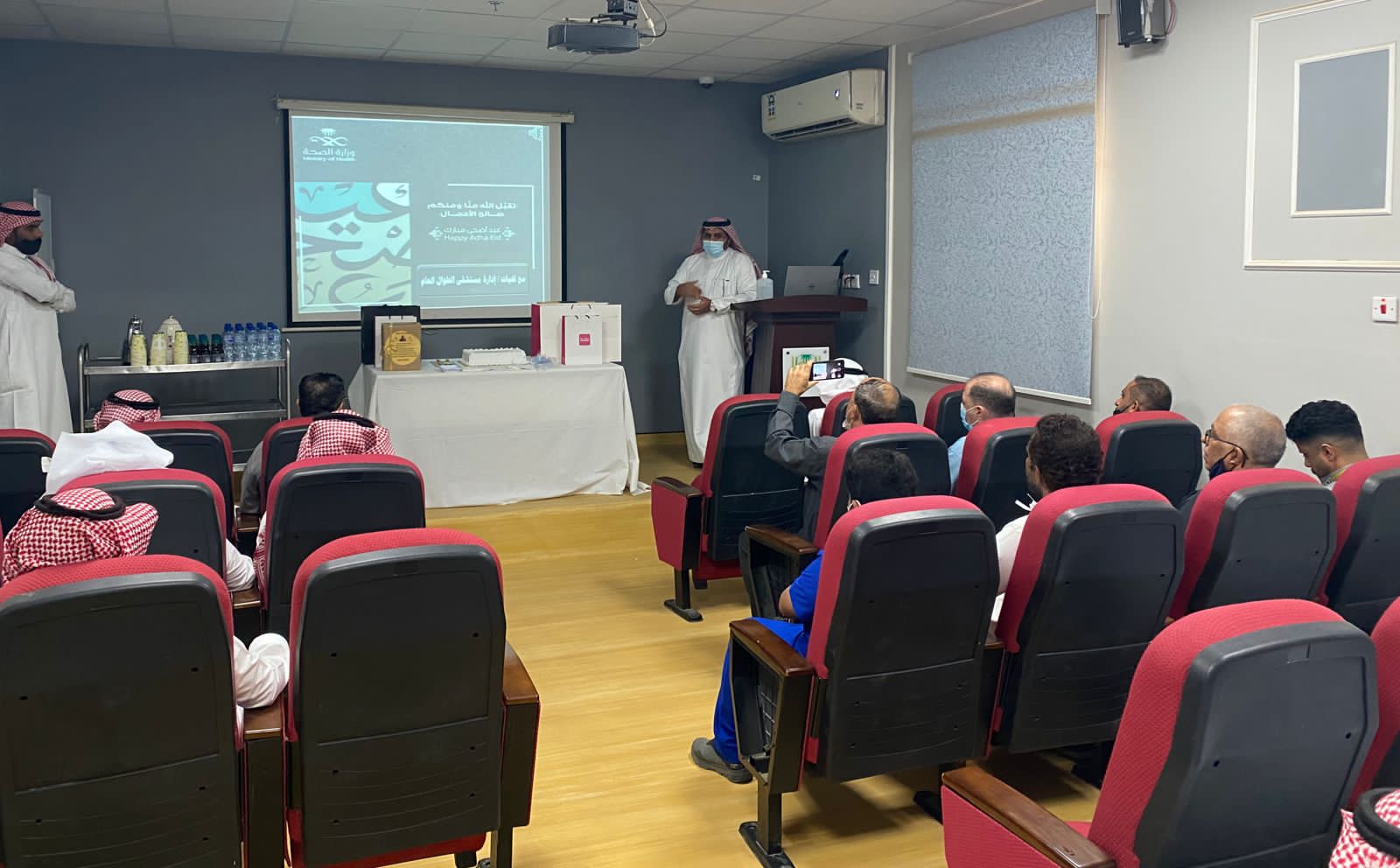 وقد هنأ ” نجمي ” في كلمته منسوبي المستشفى بعيد الأضحى وأشاد بجهود وزارة الصحة التي بُذلت في موسم الحج والتي تكللت بالنجاح كما ثمن الدور الذي يقدمه موظفو المستشفى المناوبين خلال إجازة عيد الأضحى مؤكداً على الجميع بذل المزيد من الجهد لتحقيق رضى جميع متلقي الخدمة الصحية