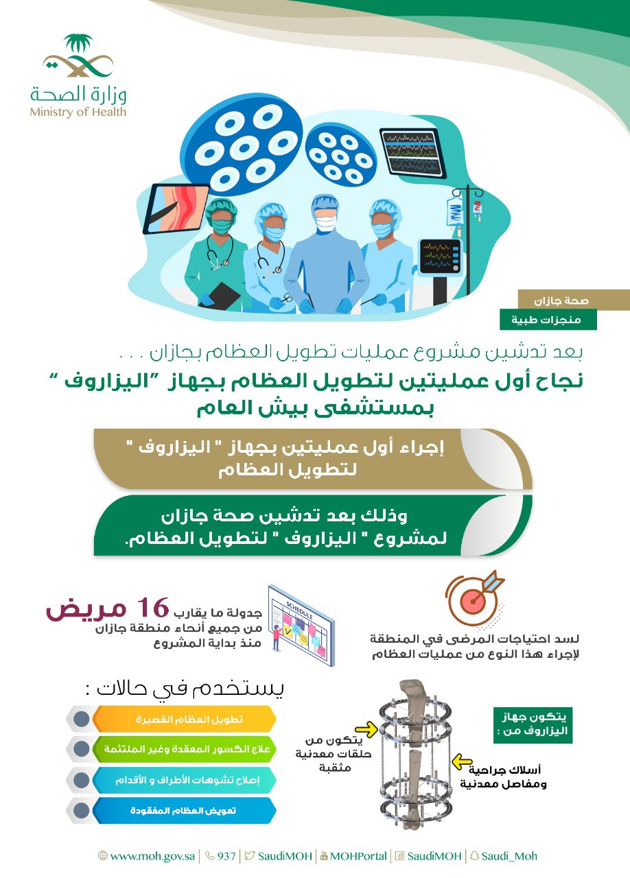 نجاح أول عمليتين لتطويل العظام بجهاز اليزاروف بمستشفى بيش العام