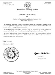 The Institute of Sustainability and Carbon Footprint LLC proudly announces a historic achievement with the official registration of its international branch in the United States of America under the name: